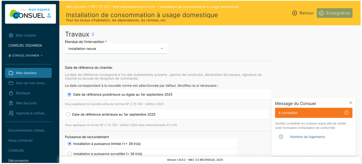 Nouvelle NF C 15-100 : évolution dans Mon Espace CONSUEL